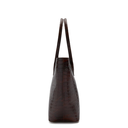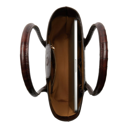 Pasta de compras em pele de vitelo castanha com relevo croco
