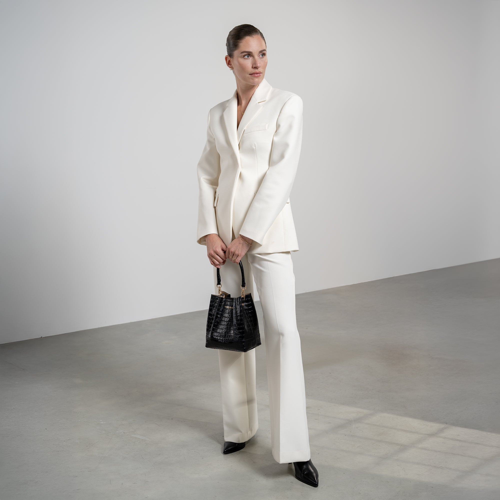 Bolsa Femme Forte Minette croco em pele de bezerro preta