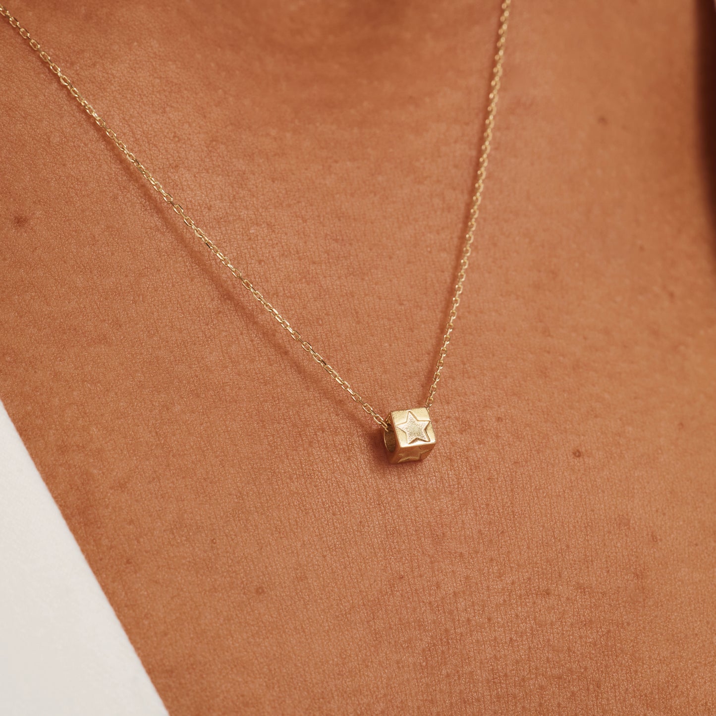 Apresentamos o Isabel Bernard Le Marais Felie Cube Charm com estrela em ouro de 14 quilates - uma adição delicada e significativa à sua coleção de jóias, concebida para a mulher moderna e sofisticada que aprecia a elegância e a expressão pessoal.