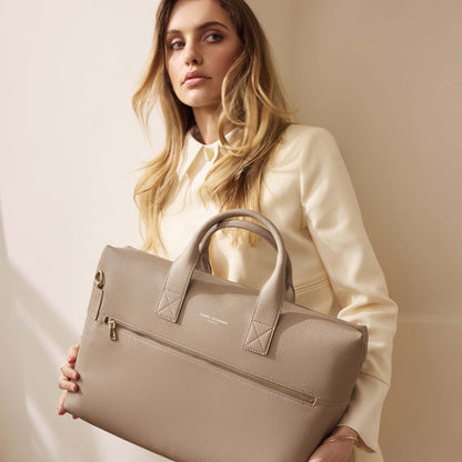 Honoré Anique bolsa taupe de couro com compartimento para laptop 16.4"