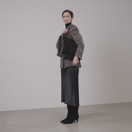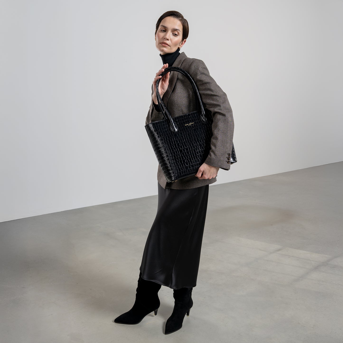 Honoré Lysanne mala shopper de couro de vaca preta croco