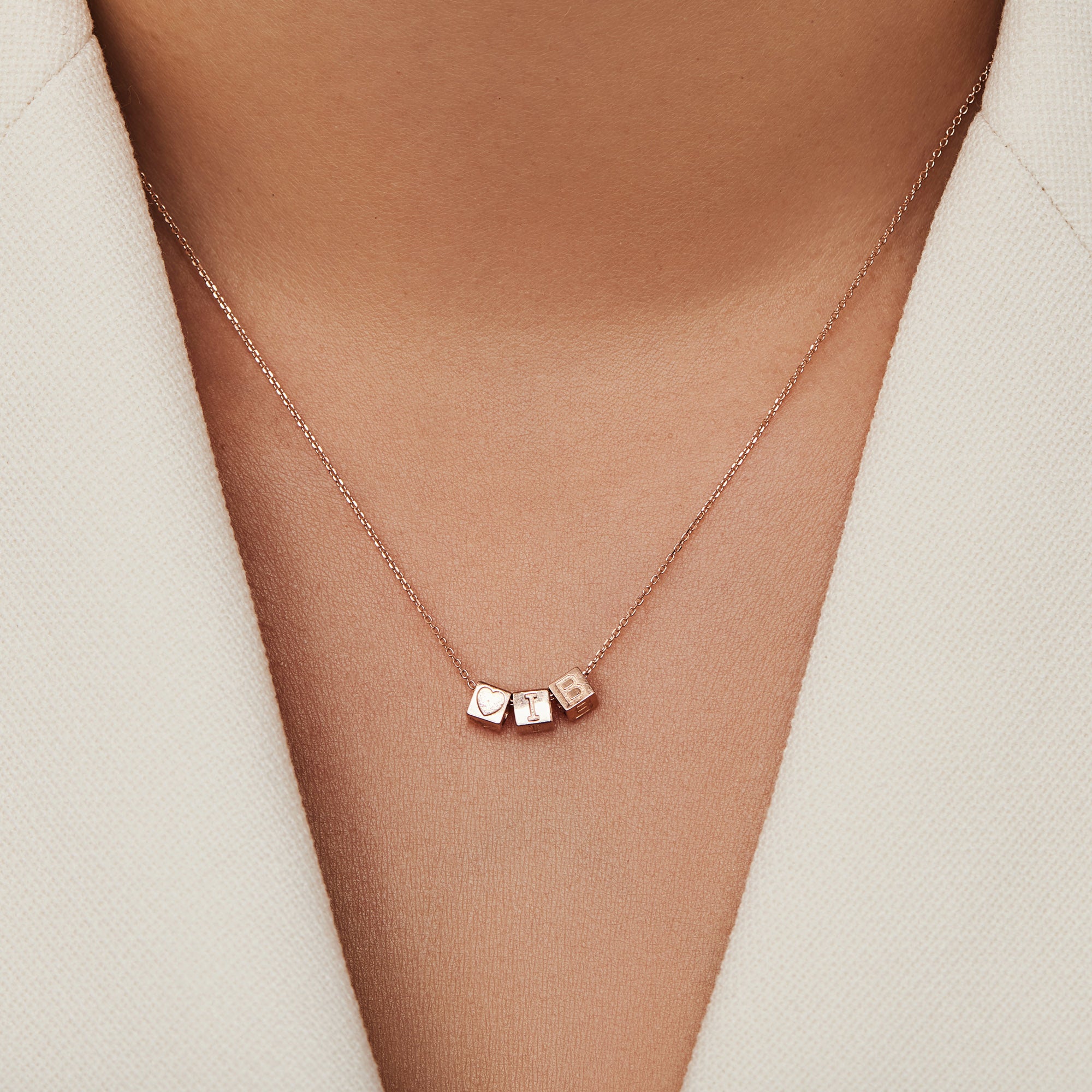 Cadeau d'Isabel set i 14K roséguld med halsband och kub med bokstav