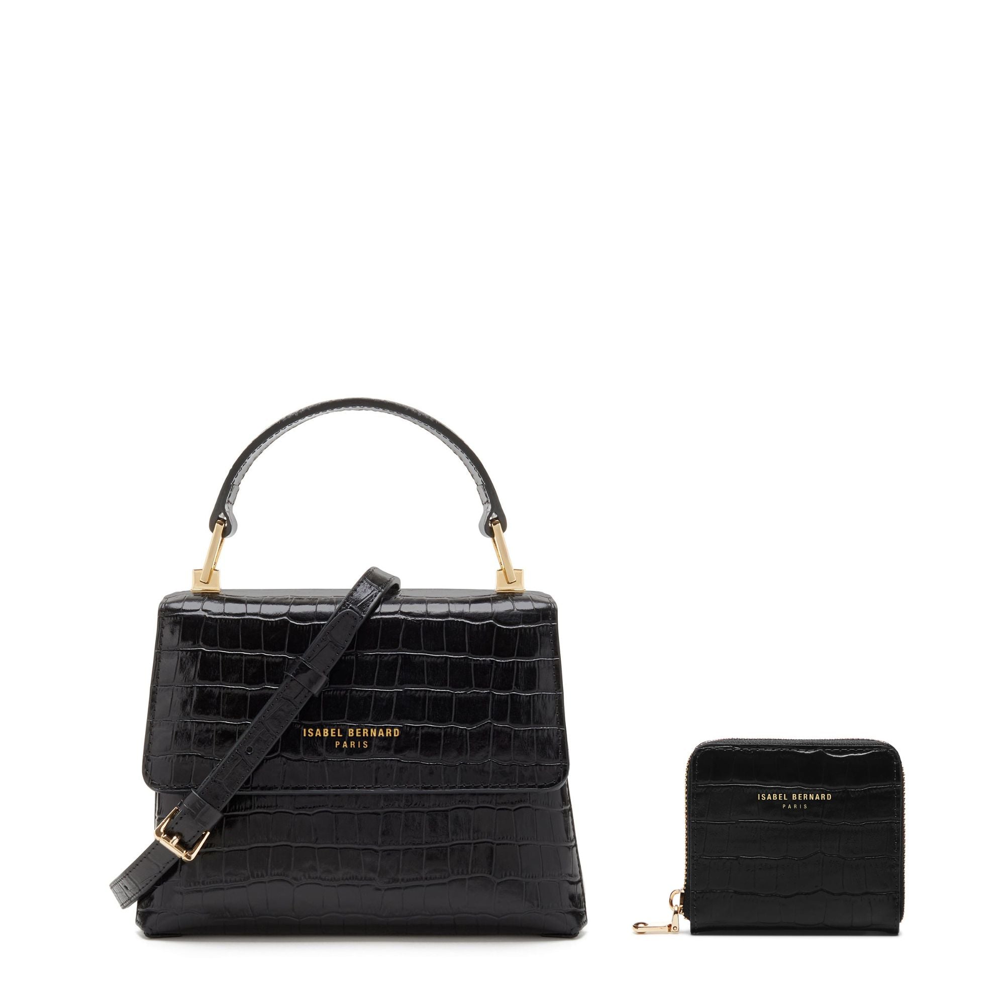 Cadeau d'Isabel handväska i croco svart kalvskinn och plånbok