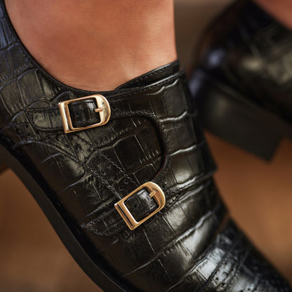 Vendôme Sophie croco svarta dubbla monkskor av kalvskinn