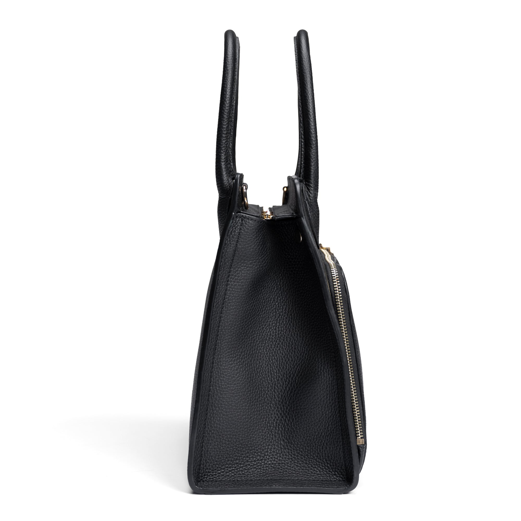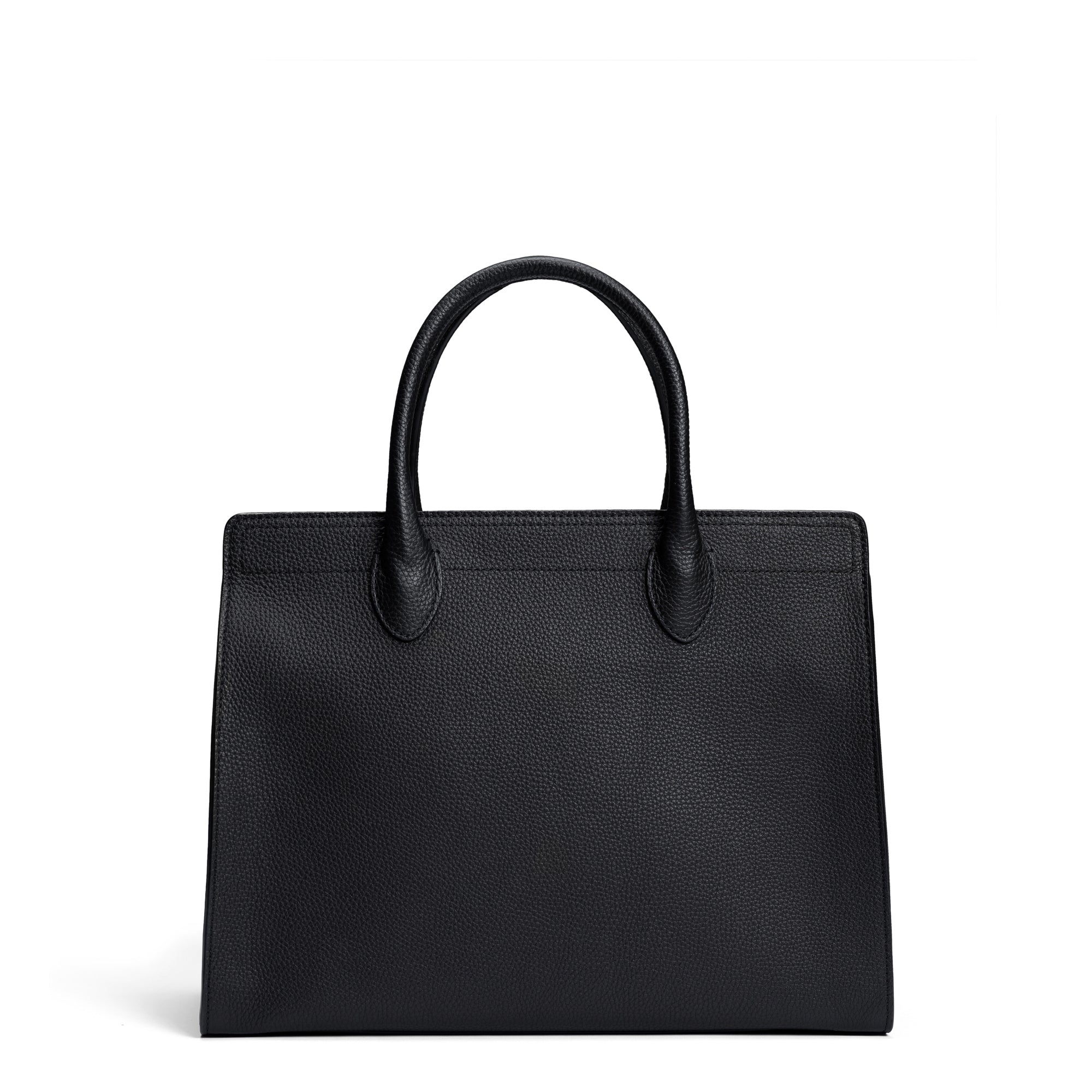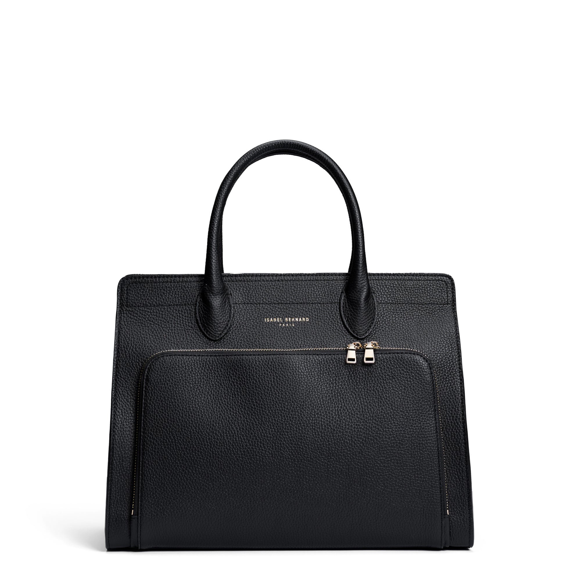 Låt oss presentera Isabel Bernard Honoré Nadine 13-tums shopper i svart kalvskinn – en tidlös nödvändighet för den moderna, professionella kvinnan som värdesätter elegans med syfte. Designad för att följa dig från möten till stunder av paus, är denna väska både strukturerad och mjuk, kraftfull men ändå sofistikerad.