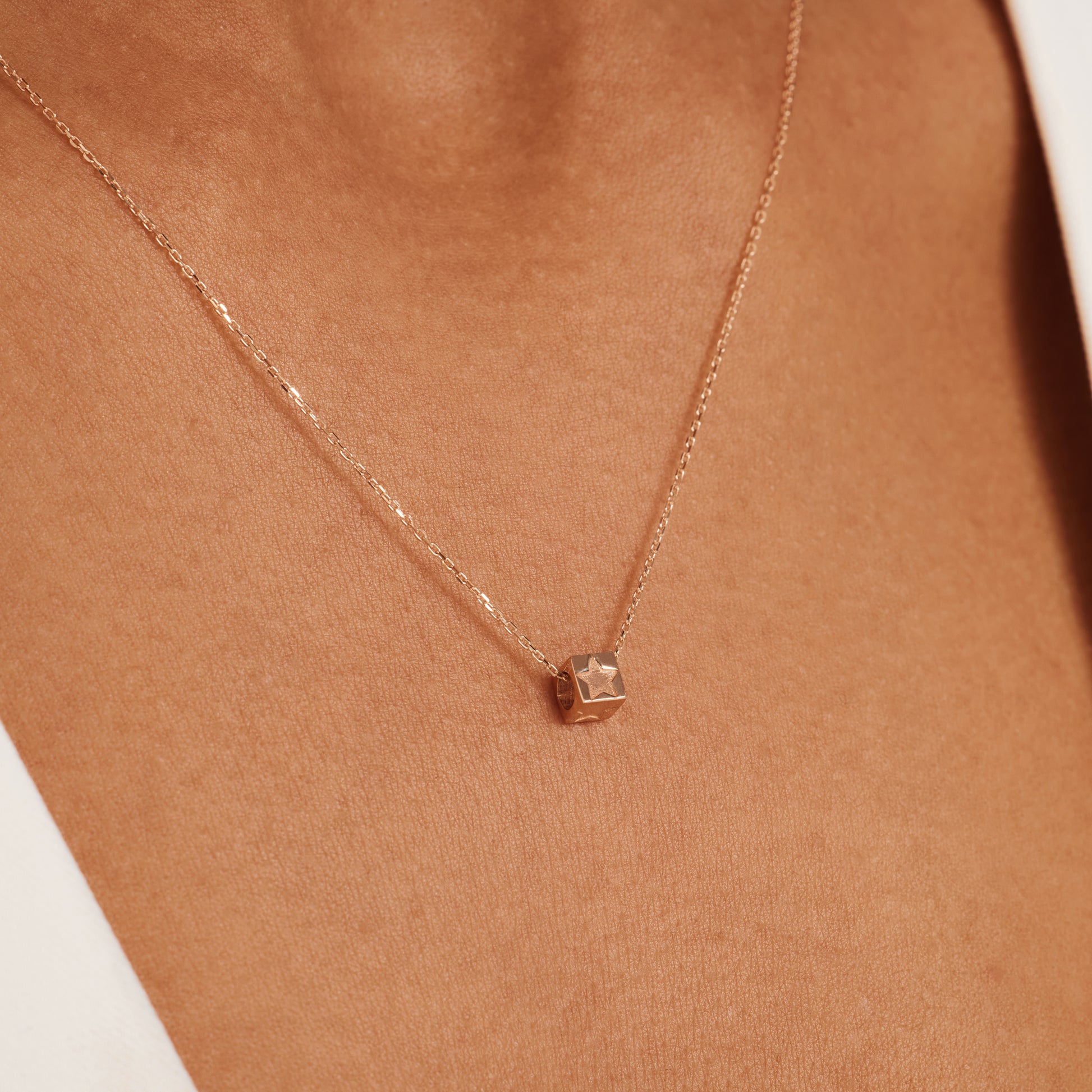 Med sin mjuka roséguldnyans är denna utsökta berlock ett tidlöst tillägg till alla smyckeskollektioner. Oavsett om det är som ett personligt minne eller en meningsfull gåva, ger La Concorde Felie Gold Cube Charm med stjärna en touch av lyx och individualitet till varje look.