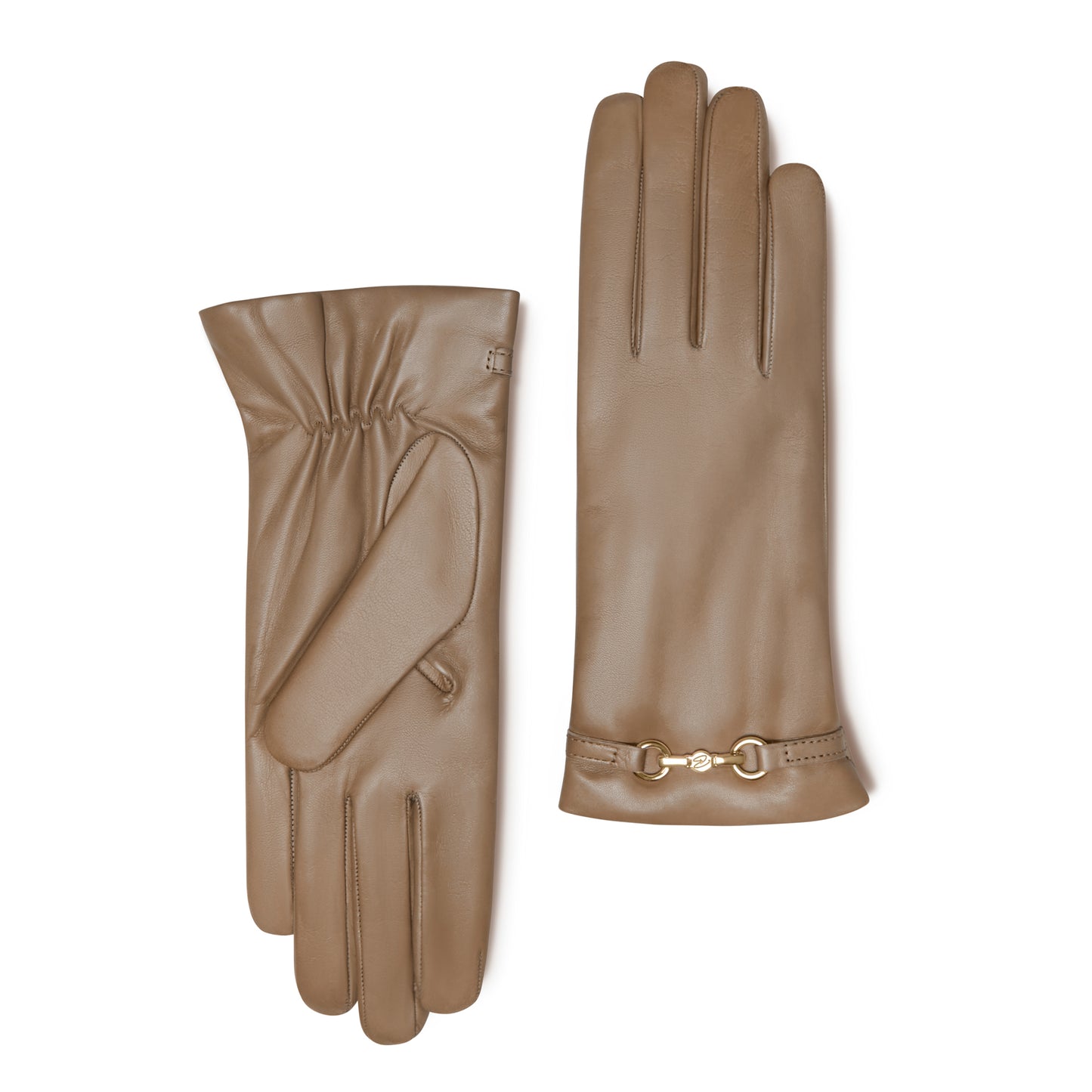Slutligen är Zenia gjord av mjukt lammnappa med ett varmt foder av lammull, tillgänglig i konjak, och kombinerar värme och stil i en lyxig accessoar.